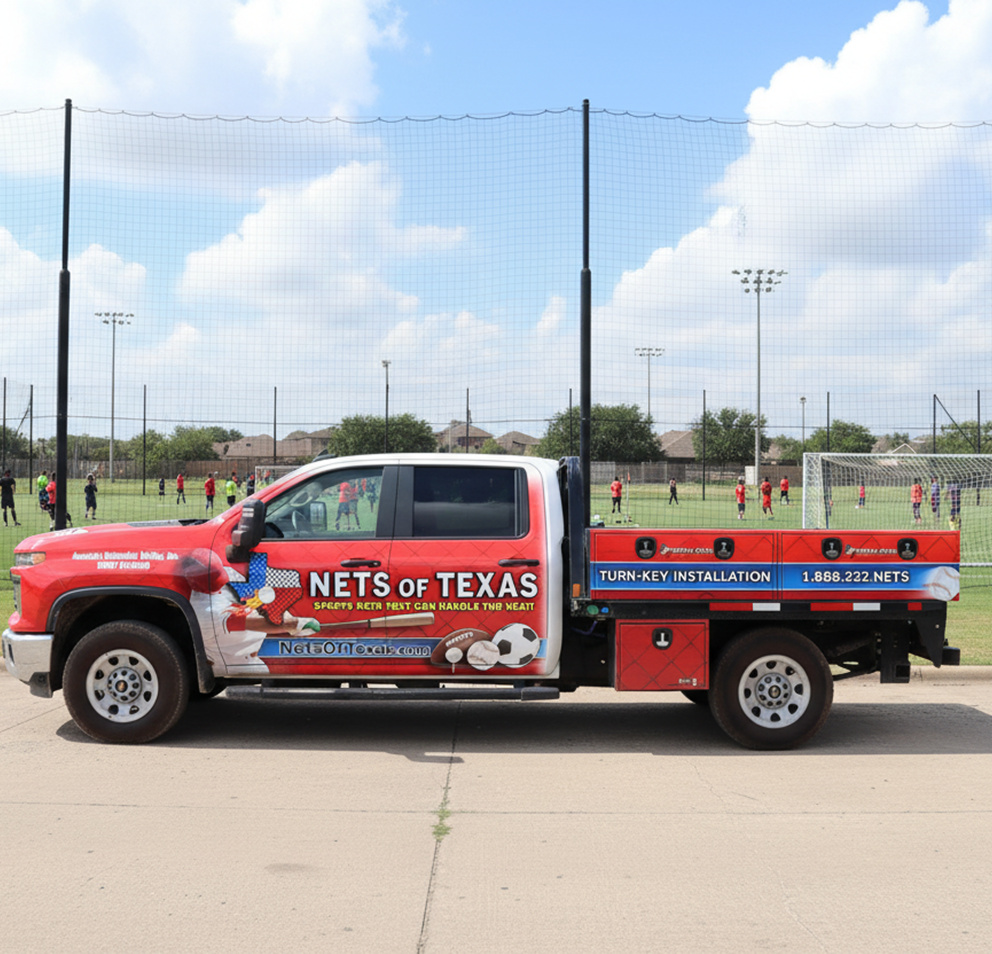 With proper design, installation, and maintenance, a Nets of Texas system can last 10–15 years or more. Our nylon and polyester nets are treated for UV and weather protection, while our pole finishes (galvanized, powder-coated, or painted) help extend lifespan and preserve a clean, professional appearance.